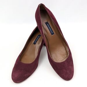 Margeaux The Heel Suede Pump Block Heel Patent Leather Accents Burgundy 38.5/8.5