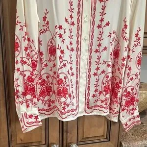 Escada White and Red Embroidered long sleeve button down blouse