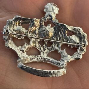Add a touch of royalty to your outfit with this elegant silver crown brooch. Suitable for any occasion, and literally goes with anything. It has a long bar pin on the back, so it’s perfect with a scarf. About 2” across.