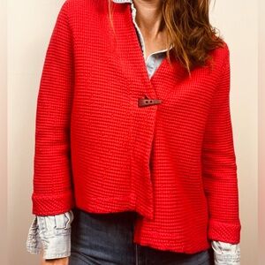 Focus Casual Life Red Waffle-Knit Swing Jacket – Size S | 100% Cotton