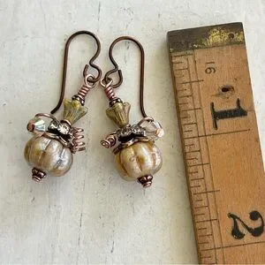 Hand Crafted ”Pumpkin Crème Brûlée” Dangle Earrings