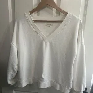 Madewell ivory off-white V-Neck Sweatshirt size M. Oversized. Balloon sleeves. Great condition! Layers well. Perfect year round. Athleisure.