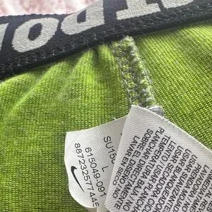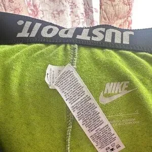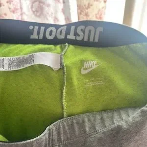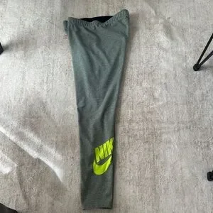 Comfortable green leggings with bold Nike logo. Perfect for workouts or casual wear.