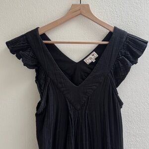 The feminine Catarina dress in soft double gauze features flutter sleeves, pockets, and swingy shape. 100% cotton double gauze. Small bleach stains on back/side near pocket (see photos), otherwise in great condition!