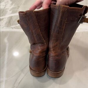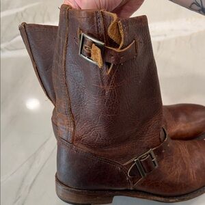 Classic leather boots with buckle detail. Perfect for versatile wear. Brand is called vintage? Purchased at Sundance. Full leather boots with buckles and short heal. So cute, they look like fryes but better quality! Only worn a couple times, just enough to break them in! Size 8 1/2 women’s