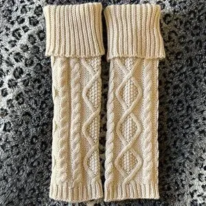 Stylish cream cable knit leg warmers. Perfect for adding warmth and style.