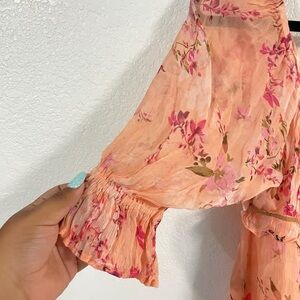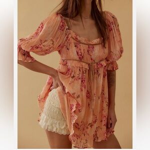 NWOT Free People Marney Mini Dress Floral Printed Puff Sleeve Ribbon Ruffle S