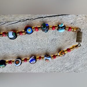 VINTAGE ITALIAN MURANO VENETIAN MILLEFIORI MORETTI GLASS BEAD NECKLACE