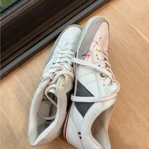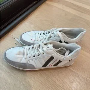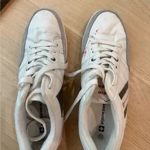 Alpine Swiss White and Gray Men’s Shoes in size 11. Has some red spots on the right shoe as pictured.