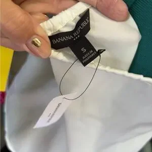 Chic white camisole from Banana Republic. Features a halter neckline with tie at neck. Perfect for layering or wearing alone. Soft and sheek fabric, no stretch, doubled fabric at breast.