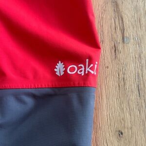 Fiery red (red and dark grey) Oaki waterproof trail suit.