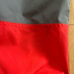 Red and Gray Hooded Rain Suit