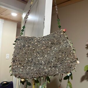This is a really detail oriented purse. It’s by Mary Frances. It has leaves cascading off of it with embroidered flowers. No flaws. The inside is clean.