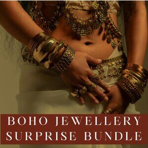 ENJOY YOUR NEW TREASURE HUNT***PLUS, YOU GET A FREE GLASS JAR INCLUDED***GREAT VALUE PURCHASE!!! You will receive a mystery lot of curated boho style *mixed jewellery - minimum 30 pieces *Mixed lot may include all or some of the following: necklaces, bracelets, rings, earrings, gold tone, silver tone, beaded, colorful, new, vintage, modern Preowned will be in good clean condition--vintage may have some slight wear due to age but nonetheless wearable NO OFFERS ON THIS LISTING PLEASE--DISCOUNTED SHIPPING HAS BEEN PROVIDED--THANK YOU!!! ***the jewellery in the photos may not be the ones you will receive as these are prop items and promotional photos--however, you will receive similar types and quality***