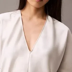 Tailored from smooth satin, this blouse is lightweight and elegant. Made with long sleeves and a plunging V-neckline. Styled with dolman sleeves in a classic silhouette.