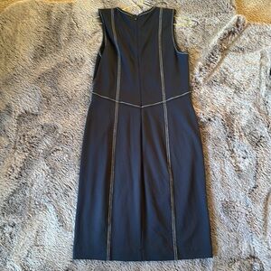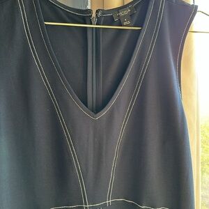 Ann Taylor Factory Navy white thread stretchy sleeveless zip-back size 8