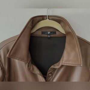 7 For All Mankind Faux Leather Puff Sleeve Dress in Saddle medium size