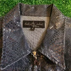 Y2k Baby Phat Blue Python-Print Leather Jacket