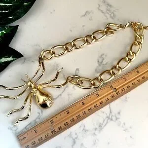 Zara Golden Bejeweled Spider Necklace Halloween Special Collection Statement NEW
