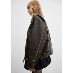 Mango Oversized Worn-Effect Leather Jacket - Xs Brown