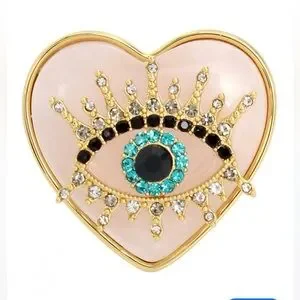 Beautiful ring I was unable to wear due to sizing. Evil eye cocktail ring embellished with faceted crystals and set on a luminous heart-shaped quartz.