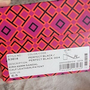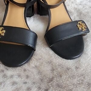 Tory Burch Black Kira Block Heel Calf Leather Sandals, Size 6.5