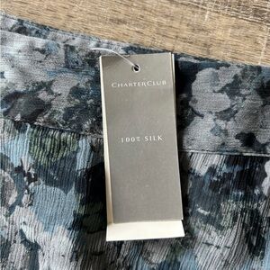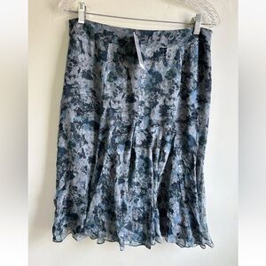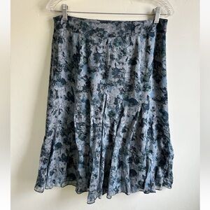 VTG Charter Club 12P 100% Silk Blue Floral Midi Skirt Flutter Hem Fairy Y2K 90s