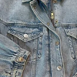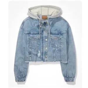 American Eagle cropped denim jacket with attached hood - size medium