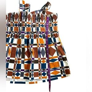 Sezane Bow Front Skirt Mini 70s Ditsies Size 36 US 4 Geometric Brown Orange NWOT