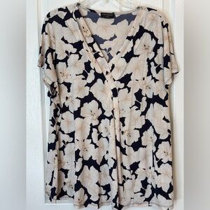 Blue and White Floral Bohemian Flutter Sleeve V-Neck Knit Top Lane Bryant 18/20