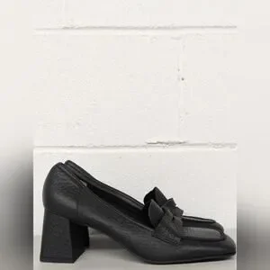 NEW Aquatalia Carlina Block heel black leather pumps size 9 Square Toe textured