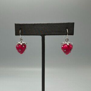3/$30 Strawberry Dangle Earrings Pink Silver Tone Rhinestone Accents Fruit