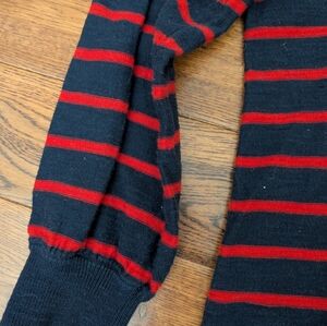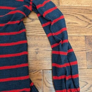 Ann Taylor LOFT Red & Navy Stripe Pullover Lightweight Sweater Tie Neck Sz S