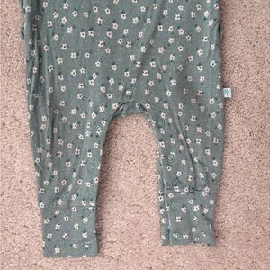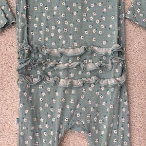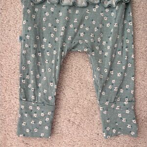 Charming teal floral footie with button accents, long sleeves and snap closure. Perfect for easy dressing.