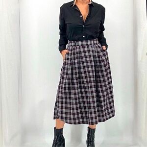 This Shiny by Nature skirt is perfect for your Dark Academia wardrobe! Preppy. Collegiate. Plaid print. High waist with elastic back. Front pockets. Pleated front. Maxi length. 100% Cotton. Handmade. Size L. Great condition. Please see photos for measurements.
