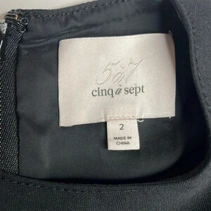 Cinq a sept black dress asymmetrical hem fringe feature sleeveless lined classic