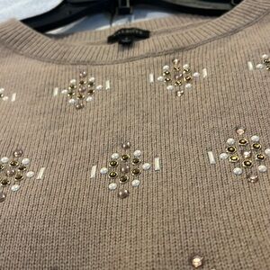 Chic beige sweater with stylish embellishments. Ideal for a refined look.great quality sweater the embellishment on this sweater is so sophisticated looking