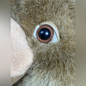 Good condition. Some of the threading of the hook and loop closure of the sound box is coming undone in the back. Eyes are a little scratched.