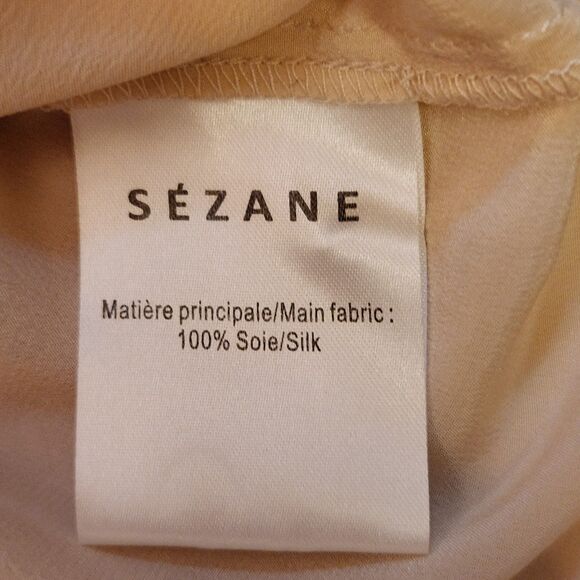 Sézane Creme 100% Silk Blouse, Shoulder Epaulette Detail, Gold Buttons Sz 36/US4