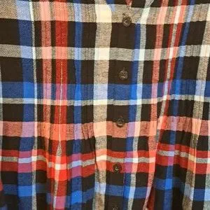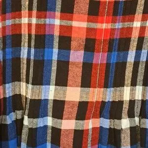 Vibrant plaid button-up shirt with a mix of colors. Perfect for casual wear.