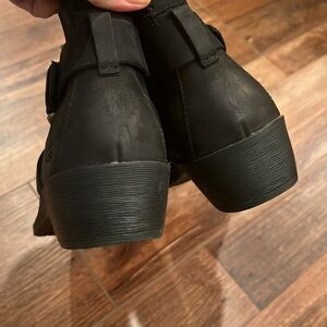 Ugg New Wylma Black Oiled Leather 1.5" Stacked Heel Strappy Moto Booties sz 11