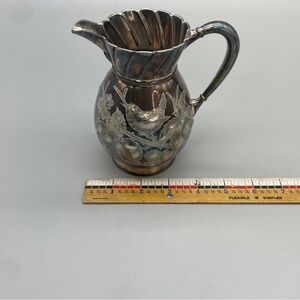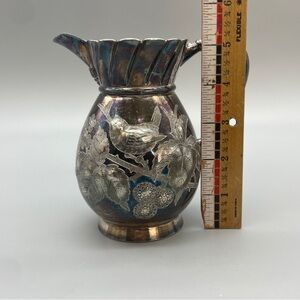 Antique Silver Creamer Meriden Britannia Company Bird Foliage Etched