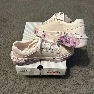 Skechers Women’s Rose Cordova White w/purple flowers