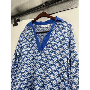 NWT Sigrid Olsen Womens Medium Blue White Linen Top Scallop Print Coastal Preppy
