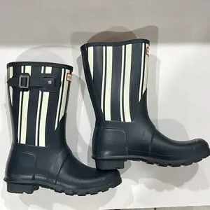 Hunter Mid-Calf Rain Boots Navy/White Sz 8