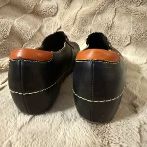 Chic mules/clogs with black leather and brown accents. Stylish and comfortable for any occasion. Incredible brand “SPRING STEP L’ARTISTE”