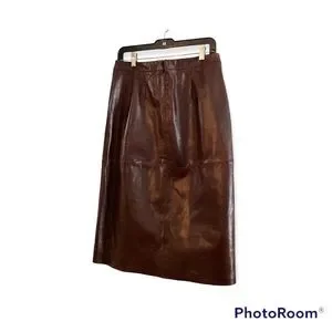 PRICE New GAP Vintage High Waisted Leather Midi Skirt Colour Burgundy Size 8