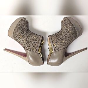 Christian Louboutin Brown Laser-Cut Leather Pampas 150 Peep Toe Ankle Boots Size