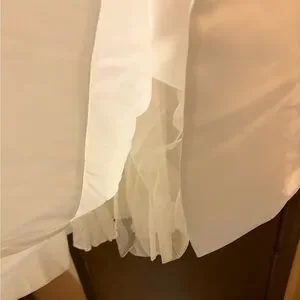 Perfect for bridal events! Has 2 tiny marks on the back of the dress as show in the last few photos- not super noticeable from afar.