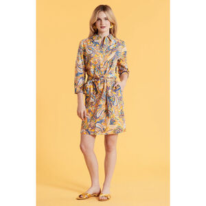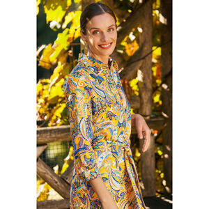 Tyler Boe Ziva Paisley Belted Shirtdres Half Placket Classic Collar
